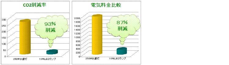 | | | 上表は水銀灯250wとLEDランプ18wの比較データです。 | |